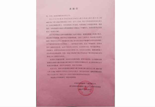 中铁四局集团第一工程有限公司向乐竞体育·乐竞官方网站-乐竞online(中国)发来表扬信